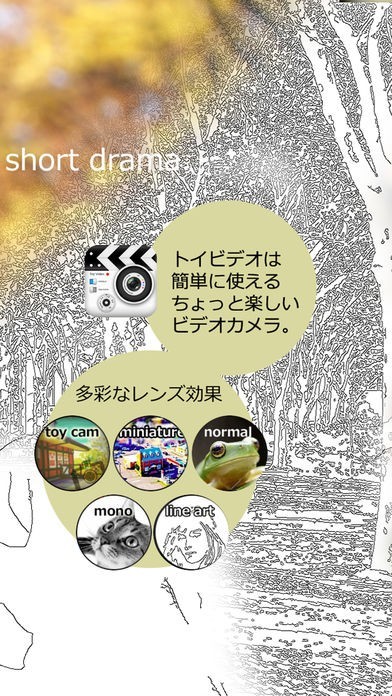 トイビデオは、毎日の日常をショートドラマ風に加工できるビデオアプリです。多彩なレンズ効果や設定を行うだけで簡単にドラマが作れます。BGMをつけることもでき、プロモーションビデオ風に加工することも可能です。作った画像は、FacebookやYouTubeなどのSNSに投稿することもできます。夜空の星を60倍速で撮影することや、ストップモーション機能を使ってコマ送りアニメーションもできます。トイビデオを使って、日常や景色を加工しプロ並みのショートドラマを作ってみましょう。