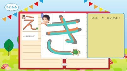 “ふたりモード”で書いたことばはアルバムに保存できます。上手にかけた時のこどもの笑顔や親子の様子を撮影しー緒に保存できます。成長の記録を写真と残せる数少ない知育アプリです。