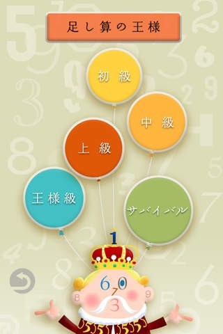 【数の王様】 次々と表示される「暗算の王様」のアイコンの数を頭の中で足して答えます。