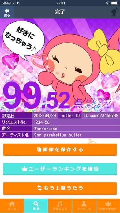 友人に採点結果を自慢したいときにTwitterと連携でキャラクターの採点画像を付けてつぶやく