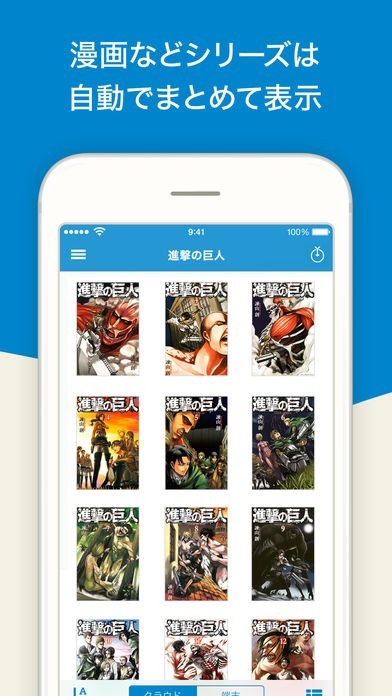 購入した本は自動で整理。漫画を1巻から読みたいときもサクサク快適です