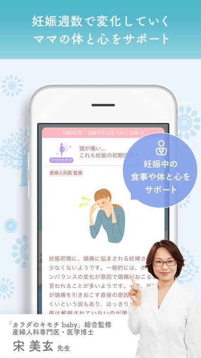 愛着がわく、かわいらしいイラストや妊娠週数に合わせた専門家監修アドバイスで、あなたの妊娠と産後ライフを楽しく、そして自分らしく過ごせるようサポートします。