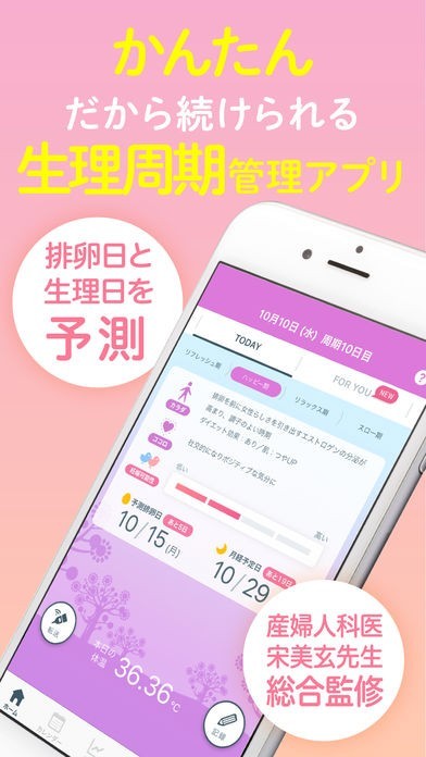 生理日や周期日数から次回の排卵日や生理日を予測してくれます。また生理周期に分泌されるホルモンによる体と心の変化を把握できるので自分と上手く付き合う手段として活用できます。"妊娠希望モード"においては毎日の基礎体温をつけると自動的にグラフ化されたり、妊活における健康情報など役立つ情報が充実していて妊活を手助けしてくれます。