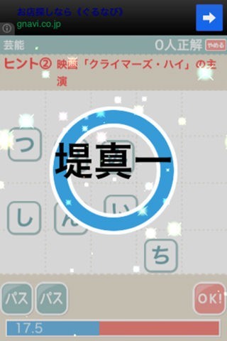 素早いフリック操作で文字を並び替え、OKボタンをタップして解答します。