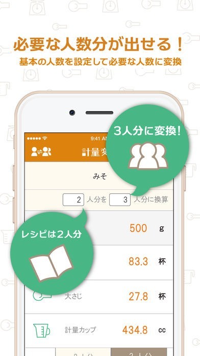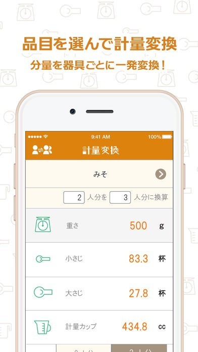 調味料の分量を簡単に換算してくれる