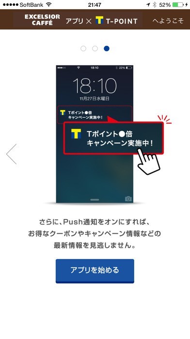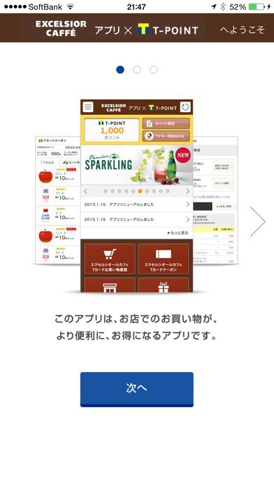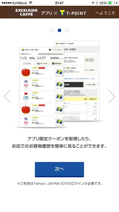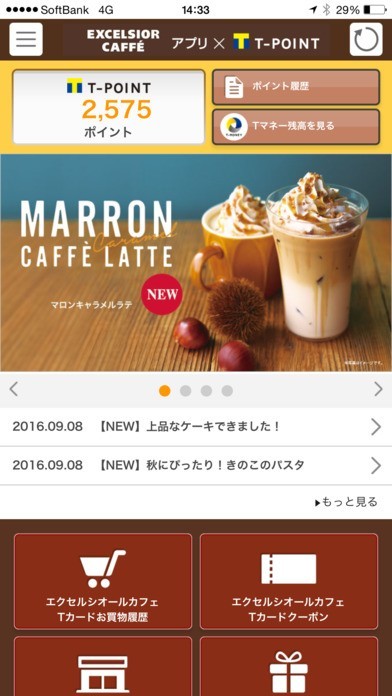 エクセルシオールカフェアプリxTポイントのスクリーンショット