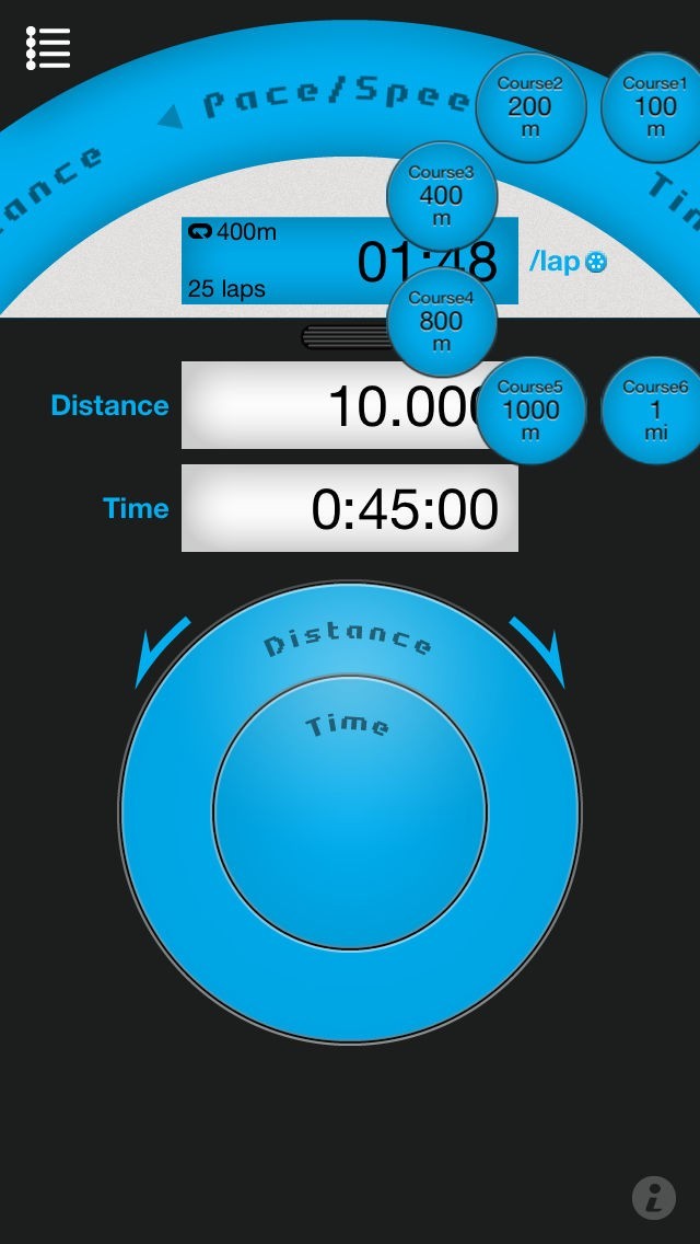 - ペースは400mトラックなどの周回コースのラップタイムに換算して周回数とあわせて表示可能