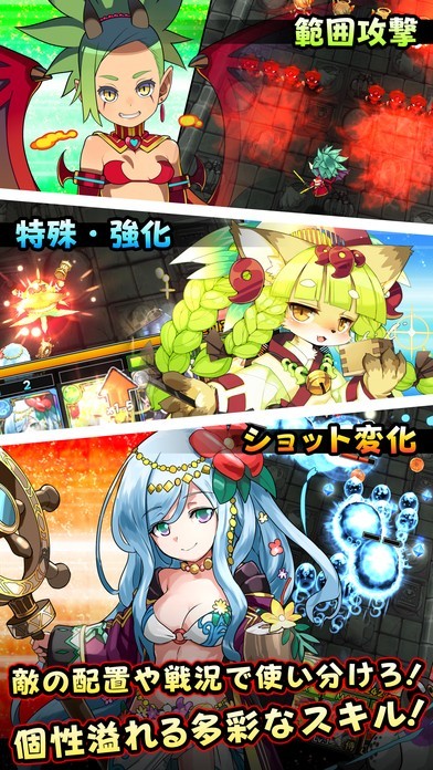 本作は左右のスワイプで敵の攻撃を避けつつオートショットで戦う簡単シューティングアクションでありながら、スキルや属性といったキャラクターごとの特性が重要となるバトルが特徴で、シューティングゲームが苦手な方でも楽しみやすい作品です。