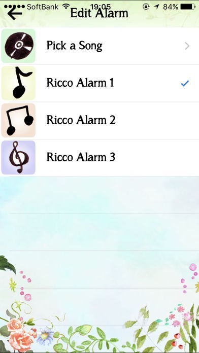 3種類のかわいいアラーム音とデバイスに入っている音楽をアラームとして使える