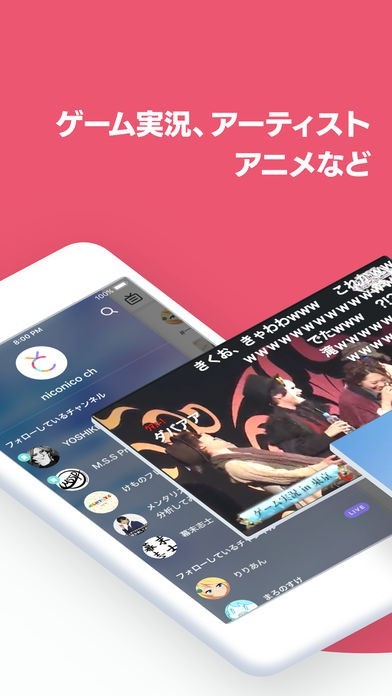 「niconico ch」では、ニコ動で活動しているゲーム実況者やその他クリエイターの情報を詳しく閲覧できるアプリです。機能としては、好きな投稿者を登録する事で投稿者が生放送を行ったり、動画を投稿した際にプッシュ通知が来ます。これにより生放送をリアルタイムで閲覧・コメントが可能になります。それだけでなく、投稿者による公式ブログやプロフィール等も見れるので、より投稿者の事を詳しく知ることが出来てしまうニコニコ動画のアプリです。