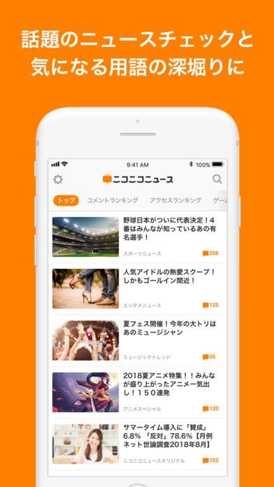 ドワンゴが運営している、動画配信サービス「ニコニコ動画」にて、ニュースの配信を行なっているコーナーが独立して、専用アプリとなって登場し、ニュースをわかりやすく伝えます。