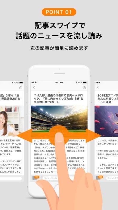 スワイプで話題のニュースを流し読みできる