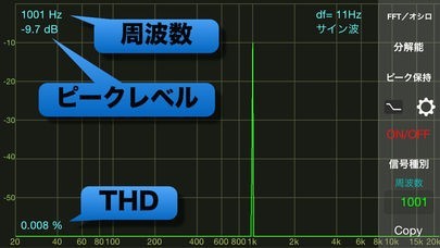 古いオーディオがあるときに調整や歪率を把握する使い方もできます。Copyボタンをタップすると、カメラロールに測定した画面を保存します。キャプチャ画像を記録として残せます。