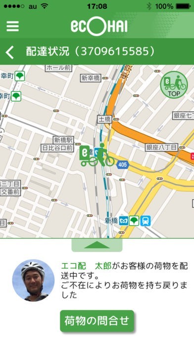 開きます。地図には配達中のエコ配クルーが表示されます。