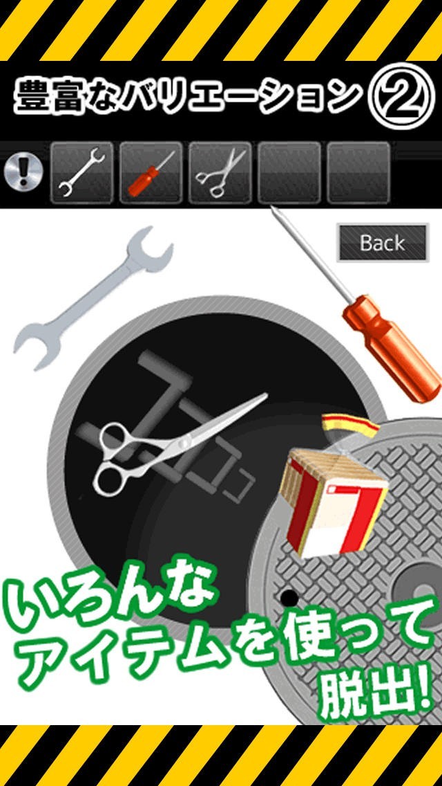 脱出ゲームの一種ですが、工具をうまく使ってマンホールを開けていくことが特徴です。シリーズ第二作目で、第一作目からネタや仕掛けなども新しくなっていて、前作にはいなかったレアキャラも登場します。最初はちょうど良い難易度になっているため、前作を試したことがない方や、脱出ゲームがあまり得意ではない方でも、十分に楽しむことができるでしょう。ステージを攻略していくと、徐々に難易度も上がっていくため、誰でも気軽に遊べるアプリです。
