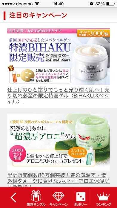 ■便利なプッシュ0通知機能で新商品・モニター・お得なキャンペーン・プレゼント情報などいち早くお知らせ。