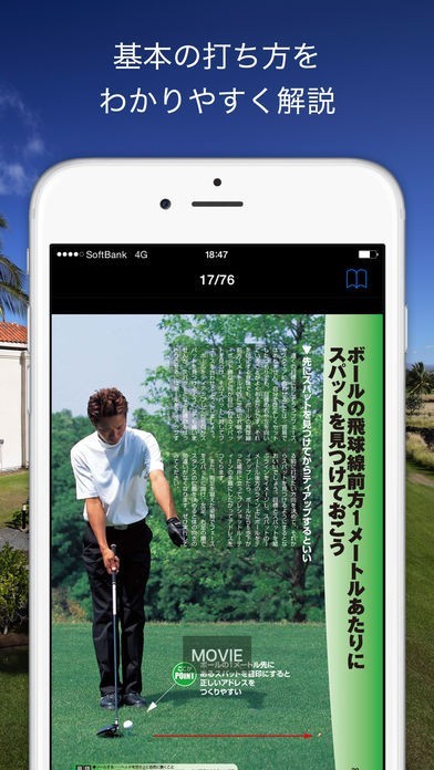 ゴルフ雑誌の紙面がそのままアプリになった程の情報の多さが魅力。重要なところは動画で解説される