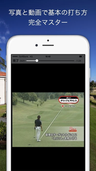 基礎固めのためのゴルフの知識を確認、要所には53種類の動画が配置