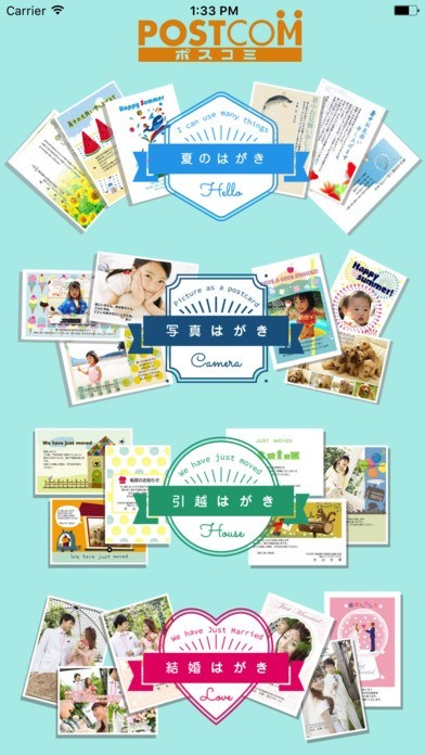 「ポスコミ」は、キュート、クール、ピクチャ(写真入り)、スタンダードの中からカテゴリを選択することによって自分がイメージしているものを作りやすくしてくれます。さらには、テンプレートも選び出せることから、デザインセンスなどに自信がないような方でも素敵なものを作り出すことが出来ます。 完成したら、メッセージと宛先を入力すれば、直接郵送してくれるので、自分自身がハガキに触るというような機会は一切なく、効率よく送ることが出来ます。