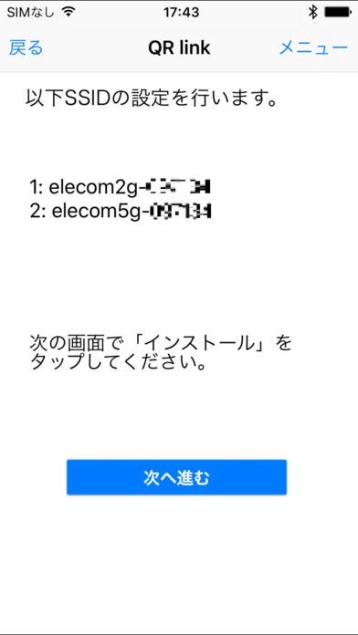 画面にSSIDの設定が表示されるので、次へ進んでインストールする