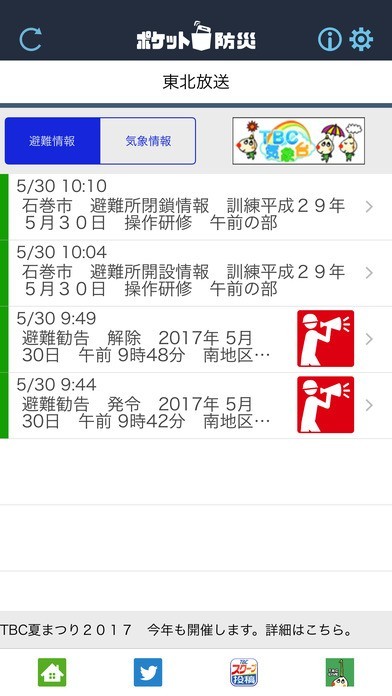 災害や防災以外に天気予報も見ることができるので普段から利用できますし、よく行く地域などは登録しておくと出かける際にも便利です。様々な用途で活用出来る優秀なツールです。