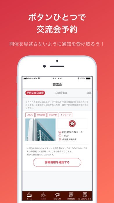 開催される交流会を随時チェックし、ボタン一つで予約ができます。