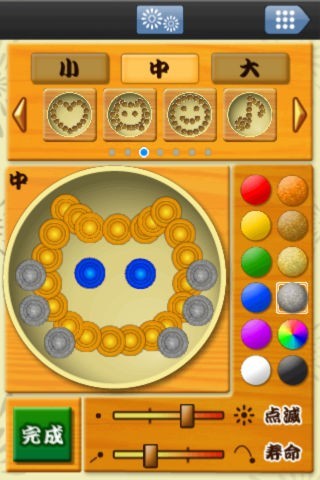 音楽に合わせて花火が楽しめるシミュレーションアプリになっています。特徴が自分だけの花火玉を作れるという点です。文字を書いたり、可愛い絵柄にしたりデザインも自由自在です。