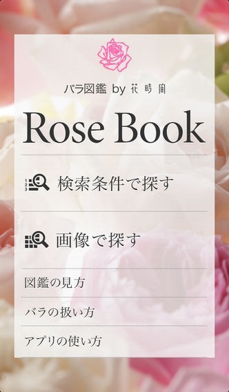 App Storeより引用美しく華やかなバラの写真が満載! 約570品種のバラのデータを収録した、切りバラの図鑑アプリ。