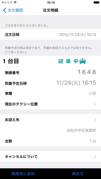6.ご予約の場合、お迎えするタクシーの無線番号、到着予定日時は、予約日時の約15分前から本アプリで確認いただけます。