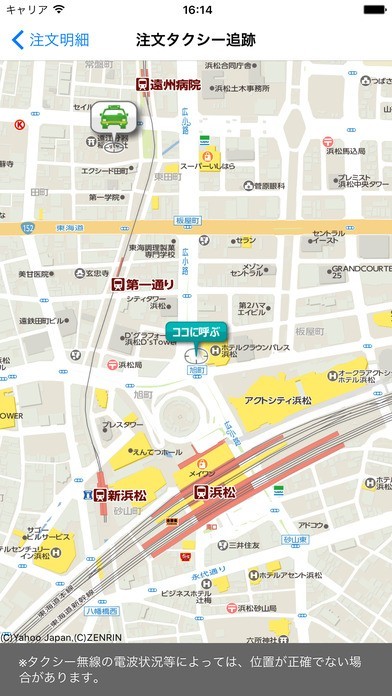 4.お迎えにあがるタクシーの場所を、リアルタイムに確認することができます。