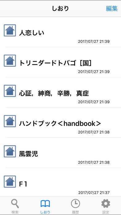 しおりや項目表示および検索語の履歴機能、インクリメンタルサーチに対応しています。