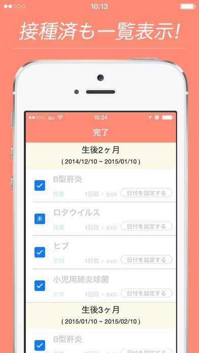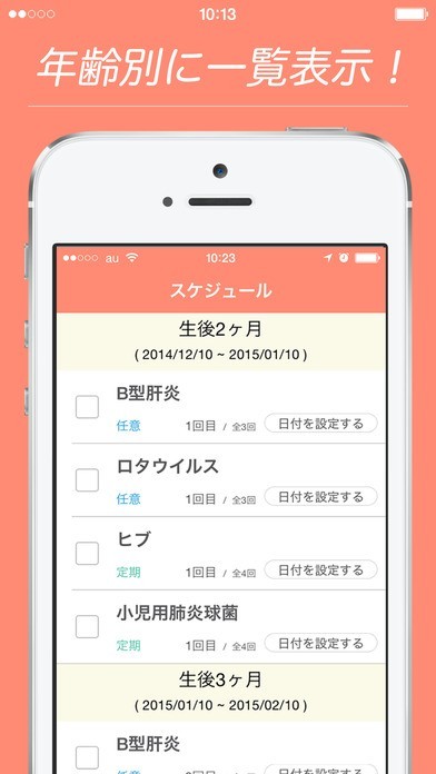 超シンプル!予防接種スケジューラーになっているので簡単にいつお医者さんのところに行けばいいのかを把握!