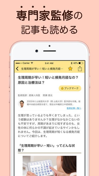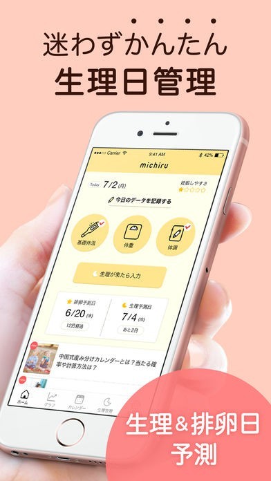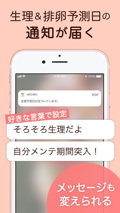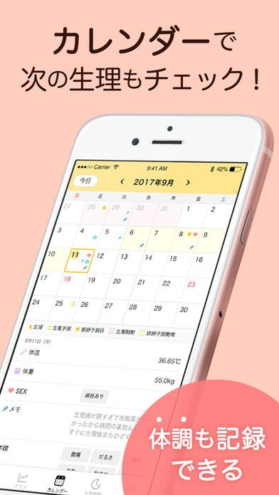 スマートフォンを使って生理や健康状態に関する情報を管理することができるアプリとなっていて、生理日を入力することで次回の生理予定日や排卵予定日が自動的に算出されます。