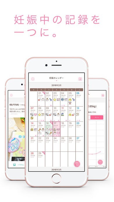 妊婦さんは出産のために日々の健康管理に気を使わなければなりません。そんな妊婦さんの健康管理を手助けしてくれるのがこのアプリです。画面をタップするだけで体調や体重、など日々変化する数字を毎日入力することができます。データはグラフ表示されるので、後から自分の生活と照らし合わせながら、健康について考えることができます。また健診日を入力すればプッシュ通知してくれるので、大事な検診の日に忘れることなく受診できます。そのほか、体調をスタンプで記録することもできます。これらの記録はすべてカレンダーで表示されるので、とても分かりやすいものです。月数や週数も表示されるので、出産へ向けてスケジュールを立てやすくなります。
