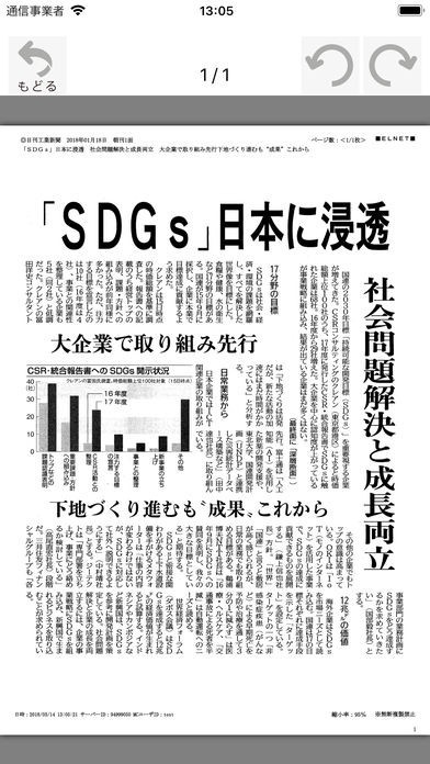 見出し一覧や記事詳細画面のPDFアイコンをタップすると記事原文を表示します。 記事原文は