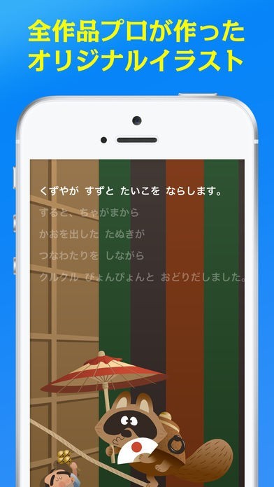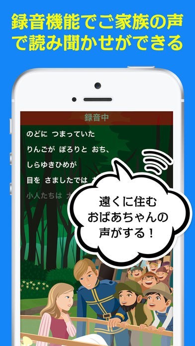 読むスピードや間隔のタイミングなど、朗読サポートがついている読むモードでは、お父さんやお母さんが字幕を見ながらサポートに合わせて子供にストーリーを読み聞かせてあげることができます。