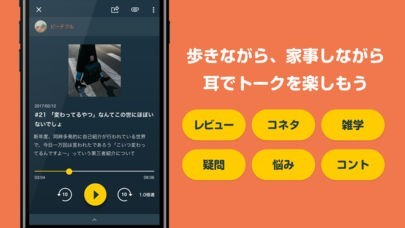 アプリを操作しながら以外の場合でも、配信される内容を再生できます。バックグラウンドによる再生にも対応しているので、ダウンロードしたトーク以外もラジオとして聞くことができます。