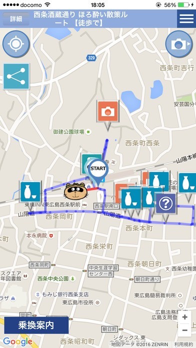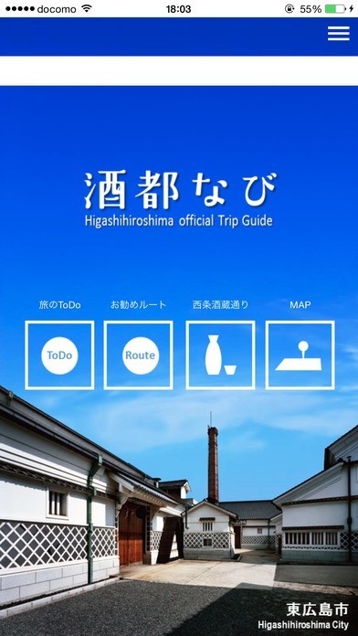 東広島市には歴史のある酒蔵が沢山ありますが、観光地巡りと「美味しいお酒の飲み比べがしたい」と思ったらこの「酒都なび」が便利です。西条酒蔵通りの酒蔵をガイドしてくれます。その他にも東広島市の観光スポットやお勧めルートの情報がまとめられています。「ARカメラ」機能を使えば、お勧めルートを分かりやすく説明してくれますし、写真をSNSで共有することも出来ます。また、これは東広島市の公式アプリで観光案内だけではなく、災害時に警報を受信する機能も備えています。