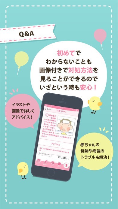 赤ちゃんの発育や病気、トラブル、ママの母乳や授乳トラブルなど、先輩ママの実際の事例に対して画像付きで対処方法を見ることが出来るからいざというときも安心の機能です!