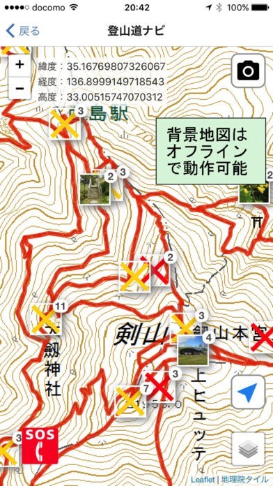 道迷いし易い登山初心者の方でも使い易いよう、登山道ルート表示やオフライン地図利用を簡易に出来るよう最適化しました。