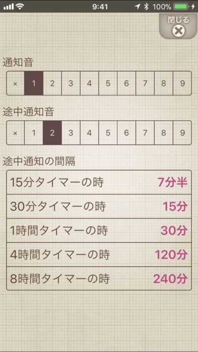 - タイマー計測中はタイムラインゲージのスワイプで自由な時間調節が可能。