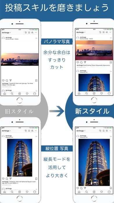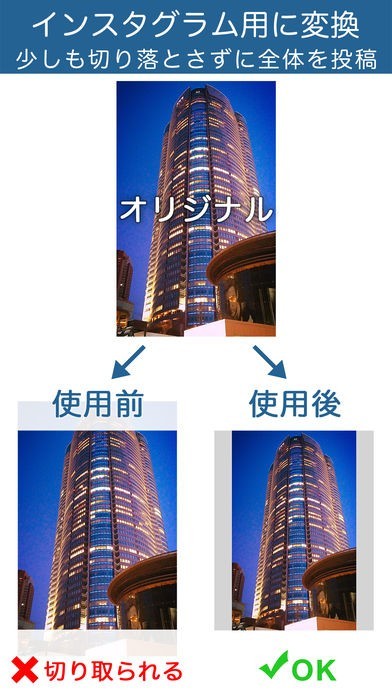 インスタグラムに投稿する写真サイズをリサイズして余白部分なく投稿できるので助かります。