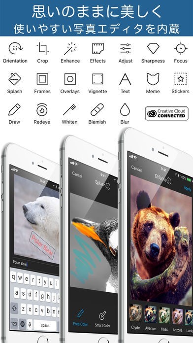 このアプリでは、編集した写真をインスタグラムに直接送信し、投稿することができる機能が搭載されているので、自信のある写真をすぐにたくさんのユーザーと共有することができます。