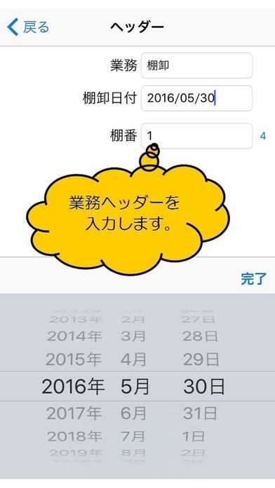 業務ヘッダーとして日付が入力できるので作業管理が便利