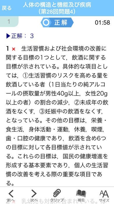 自分がなかなか正答することができないと感じている問題について、自由に「クリップ」を付けて記録することができるので、不得意な部分を徹底的になくしていくことに役立ちます。