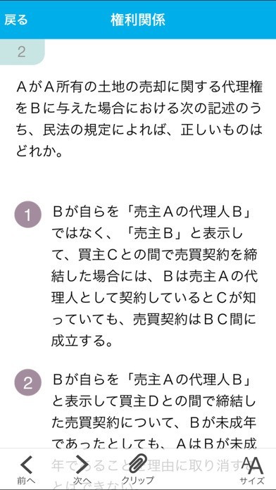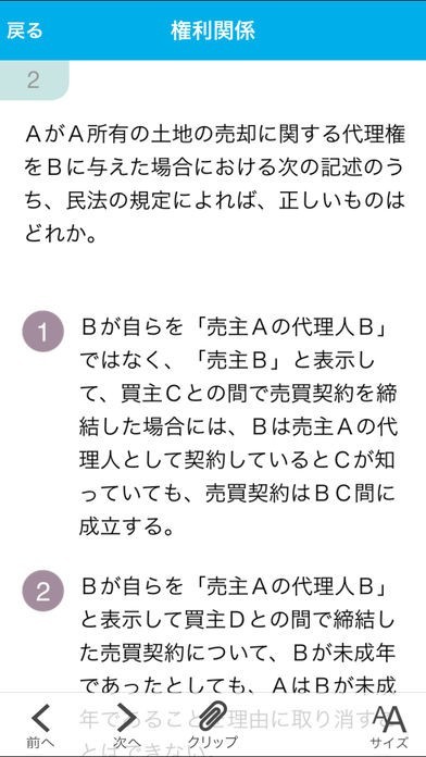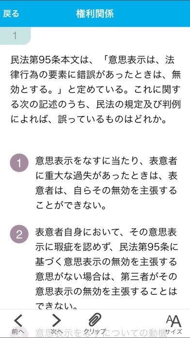 一問一答や四肢択一問題など、ランダムに問題もだしてくれるので非常に効率良く学習することができます。過去問も相当数入っているので、試験においても柔軟に対応できるような内容になっていて便利ですよ。