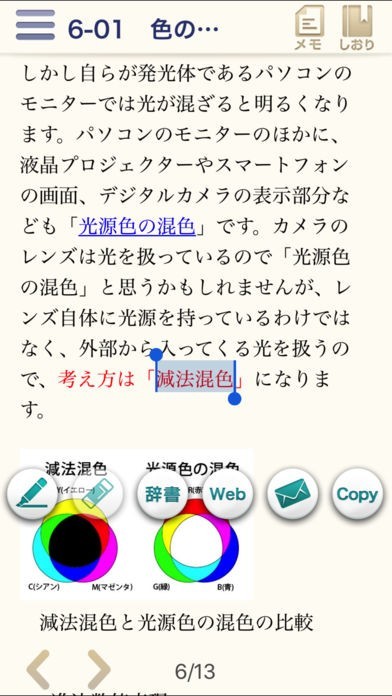 知識を勉強する上で暗記は必須になってくると思います。そのときに色付けして強調させることで暗記力をあげることができます。このアプリでは文章中の自分にとって重要だと思える部分にマークをすることができ、後から見直すことができます。