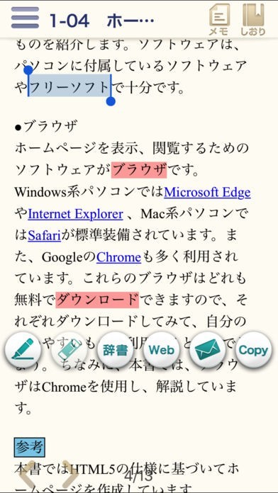 マーキングや学習メモ、参考リンクなど学習補助機能も満載!