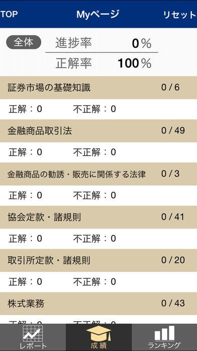 証券外務員の一種試験の対策ができ、科目ごとの購入が可能です。問題を解いていくと、正解数や学習進捗率も把握することができるので試験が控えている方にはぴったりです。