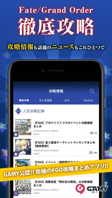 App Storeより引用「 GAMY」公認、FGO攻略アプリができました。